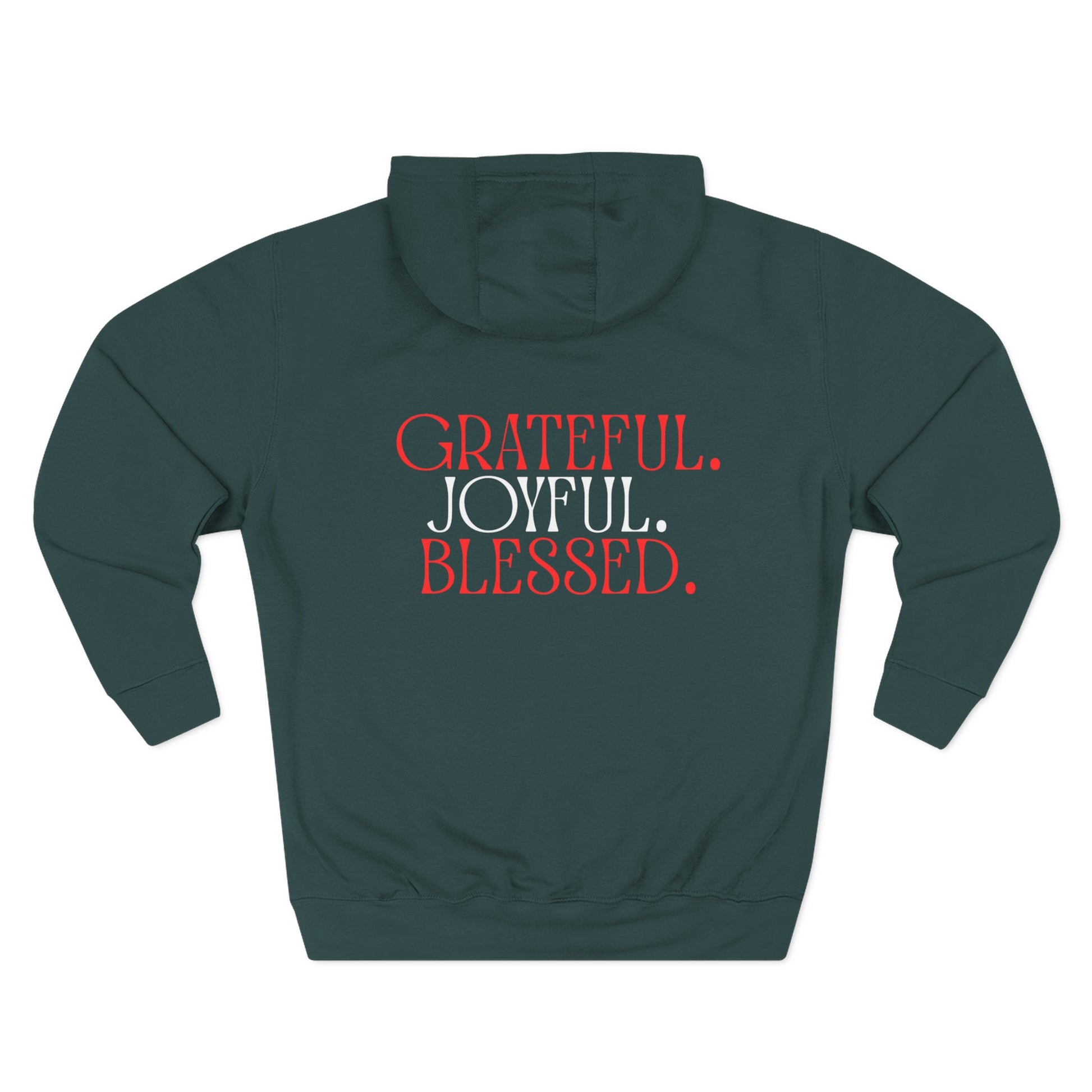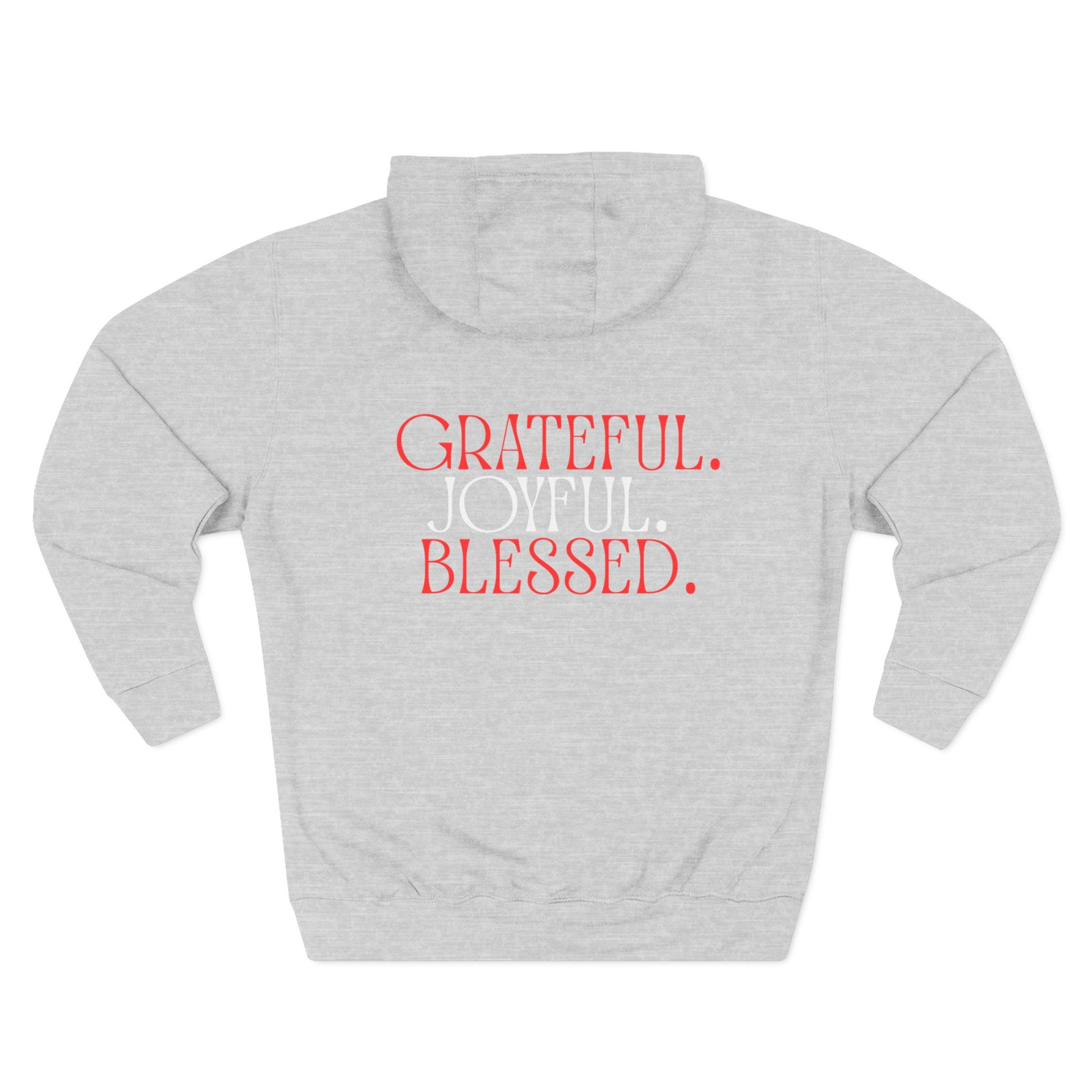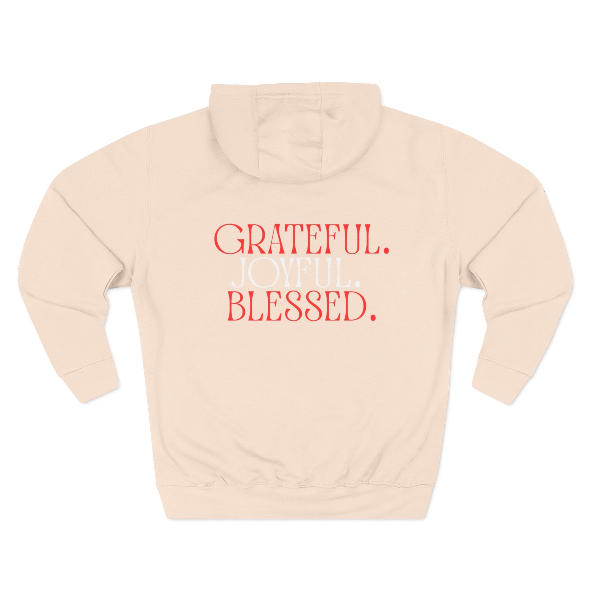 Grateful Joyful Blessed Hoodie — Heart Graphic Fleece Pullover
