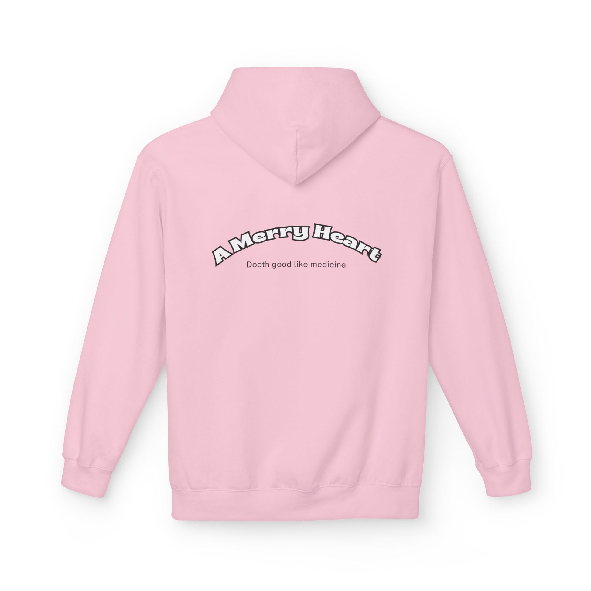 Hoodie — Happy Emoji Front with “A Merry Heart” Back Text Casual Pullover